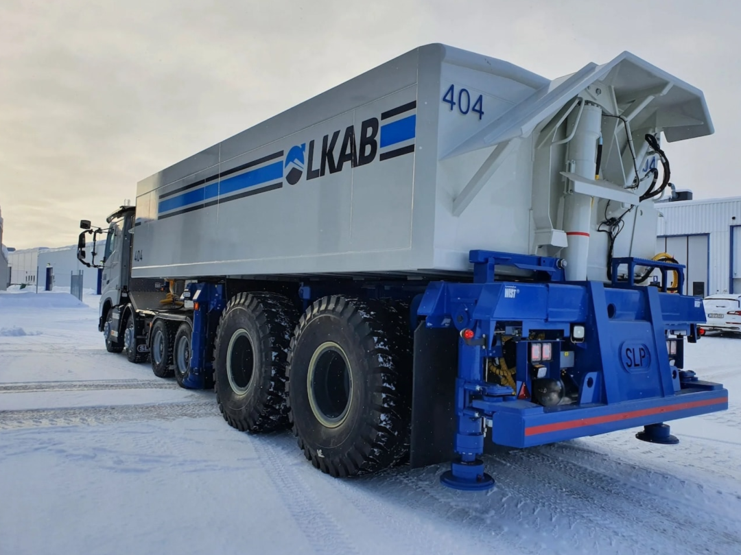 这是一辆来自瑞典的地下矿石运输侧翻自卸半挂车,服务于位于地下1250米深处的瑞典维塔福斯(Vitåfors)矿场,该矿场是全球第二大铁矿。
